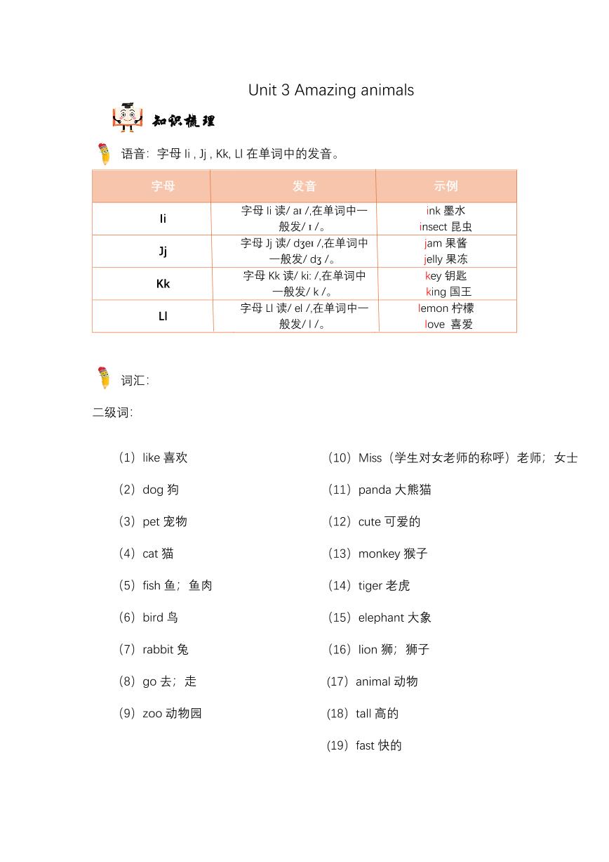 这份Unit 3知识清单特别设计了家庭树图表,直观展示家庭成员关系。清单包含发音提示,帮助家长正确辅导孩子朗读单词。