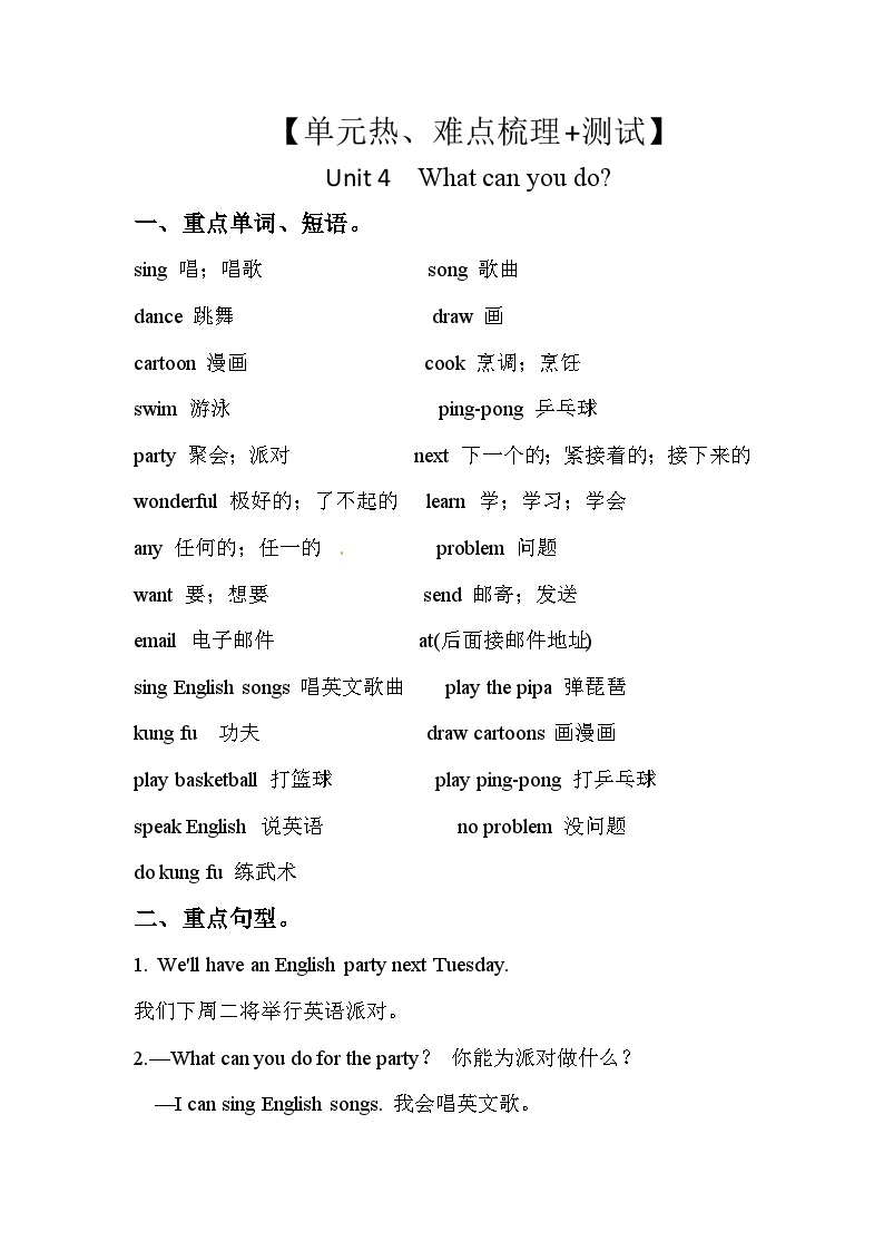 人教PEP五年级英语Unit4聚焦家庭生活场景,这份知识清单系统梳理相关词汇和句型,配套测试题检测学习效果。