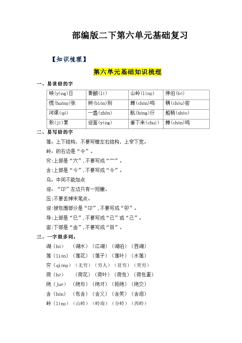 第六单元侧重写话能力培养,知识清单提供了系统训练材料:
