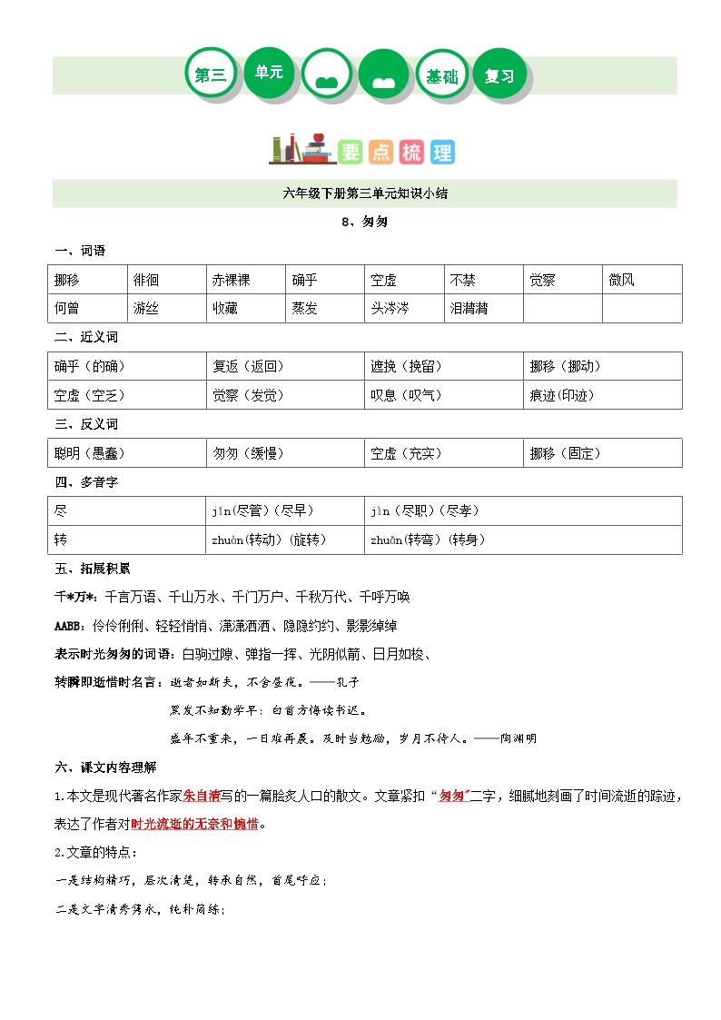立即下载部编版六年级下册语文第三单元知识大全,为升学考试做好准备!