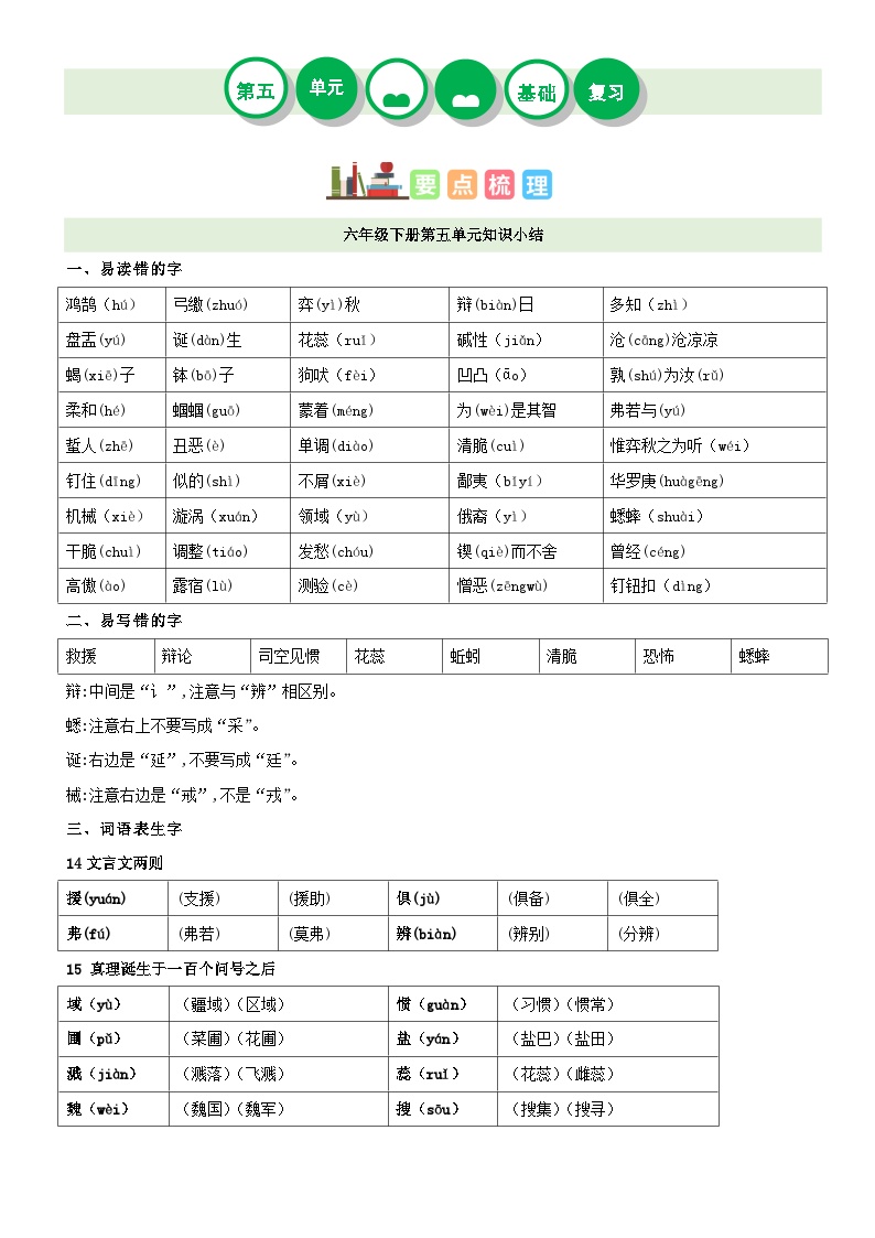 部编版六年级下册语文第五单元学习套装全新上市!这套资料集知识清单、复习讲义、检测试题和参考答案于一体,是毕业班学生复习备考的得力助手。完全免费,下载即用。