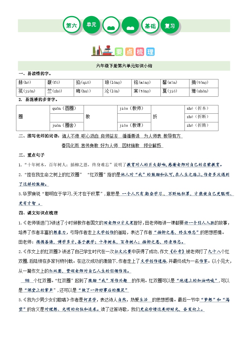 立即下载部编版六年级语文第六单元终极复习包,为小学阶段语文学习画上完美句号!