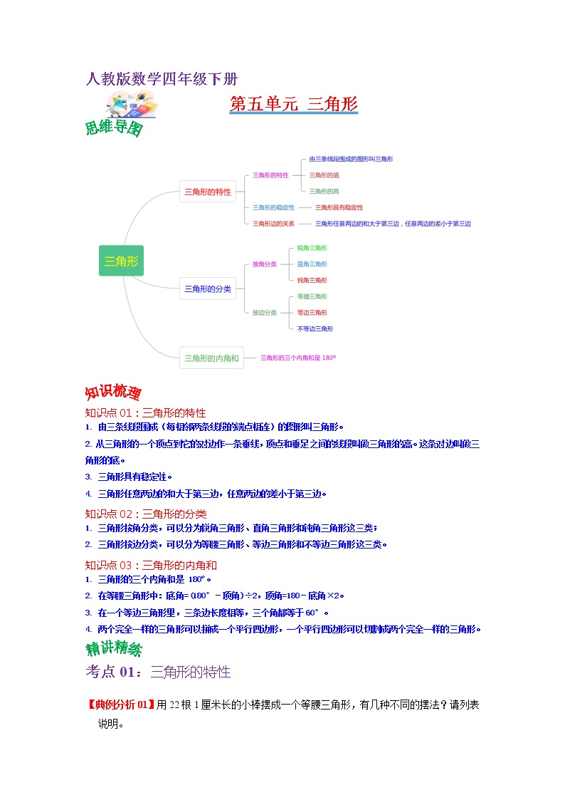 人教版四年级数学下册第五单元知识点总结与练习 📊