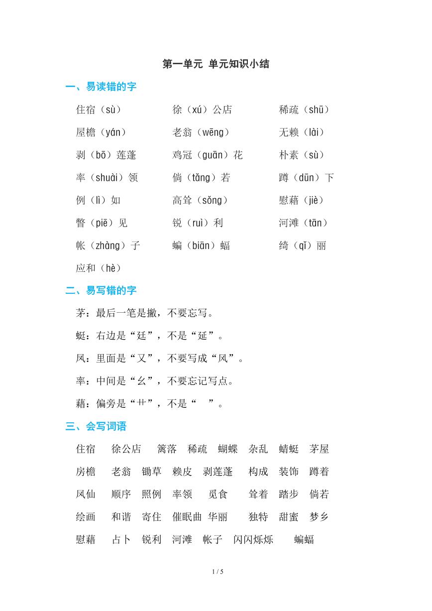 📚 部编版四年级语文下册第一单元知识清单