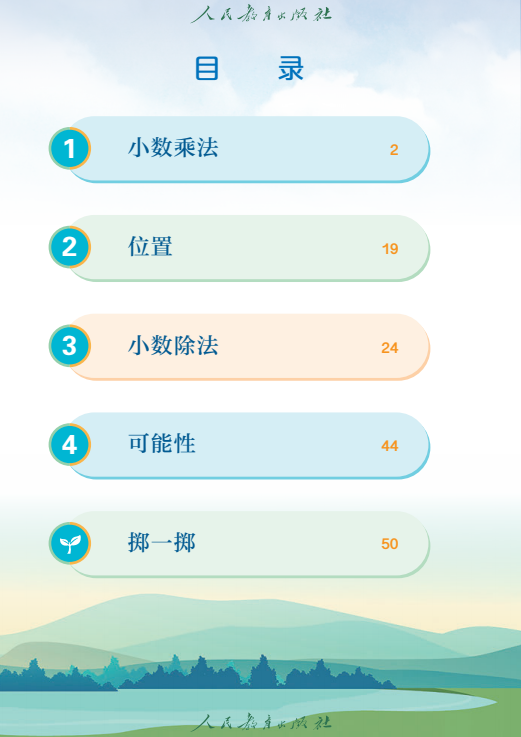 五年级上册数学涵盖小数乘法、位置、小数除法、可能性、简易方程、多边形的面积、数学广角——植树问题等关键单元:cite[3]。这些内容是数学学习的重要基石,为后续学习打下坚实基础。