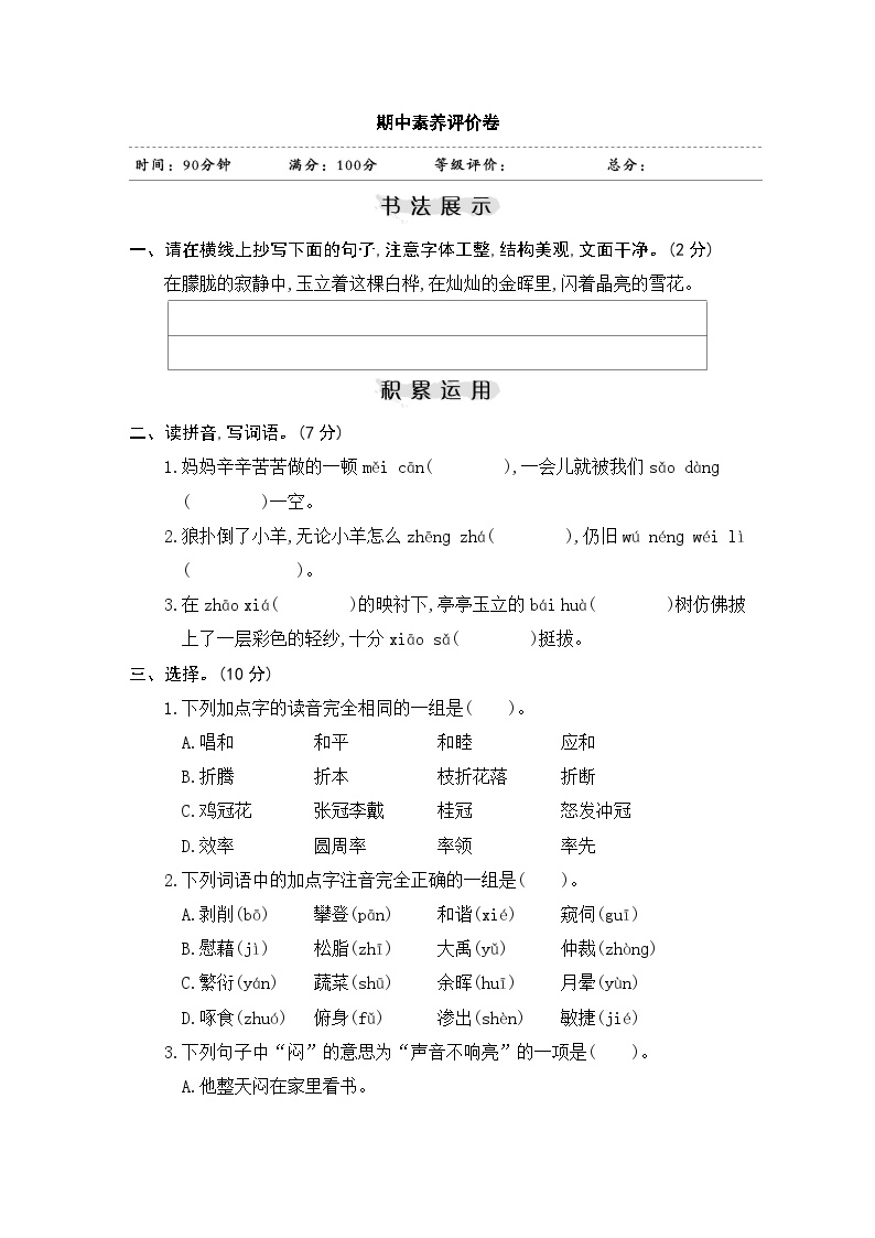 鸡娃题库推出部编版四年级语文下册期中测试卷4!免费提供下载,高清打印质量。🎓📚 期中测试卷4在前期基础上进一步提升要求,注重知识的迁移运用和创新思维培养,帮助孩子达到更高学习水平。 🏅 教育意义:培养创新意识,提升综合能力,促进个性发展 ⭐ 资源优势 内容紧扣课程标准 题型设计富有创意 答案解析详细明确 适合能力提升训练 使用测试卷进行系统练习,有助于孩子建立完整的知识体系,提高学习效率和综合能力。 百度网盘