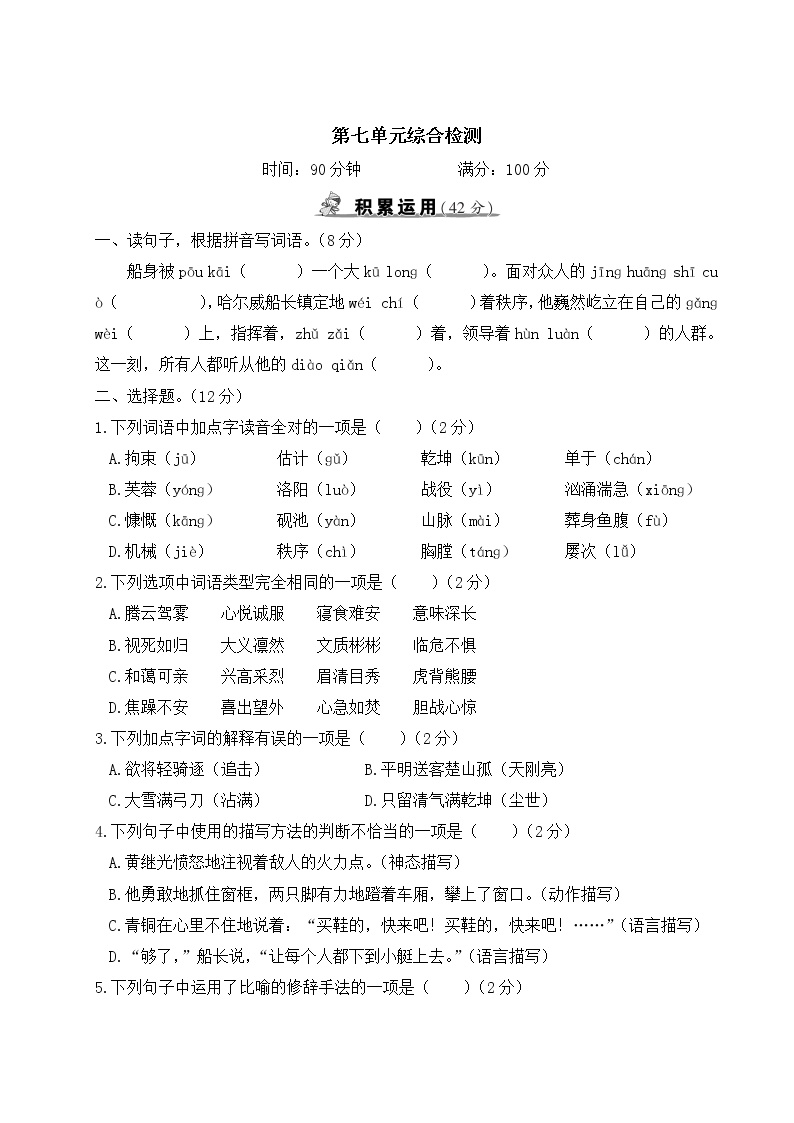 您好!鸡娃题库带来部编版四年级语文下册第七单元综合检测卷,陪伴孩子迎接学期末的挑战。