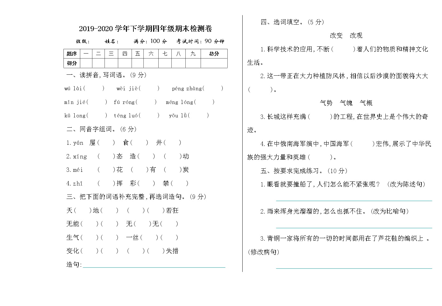 鸡娃题库(www.jiwatiku.cn)为您隆重推出新部编版小学四年级下册语文期末考试卷和答案,助力孩子圆满完成本学期学习任务!