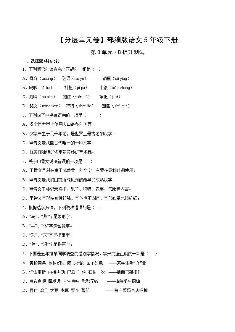 鸡娃题库隆重推出部编版小学五年级语文下册第三单元B提升测试卷!🎯 专为追求卓越的学生量身定制。