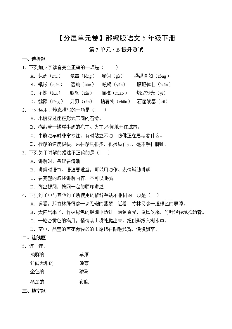 鸡娃题库提供部编版小学五年级语文下册第七单元B提升测试卷!🎨 培养语文尖子生的精品资源。