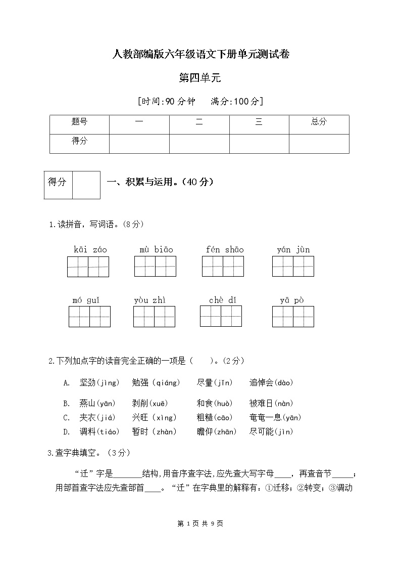 您好!这里是鸡娃题库(www.jiwatiku.cn)。今天为您推荐的是人教部编版六年级语文下册第四单元测试卷(五),本套试卷内容全面,题型经典,是孩子单元复习的好帮手。
