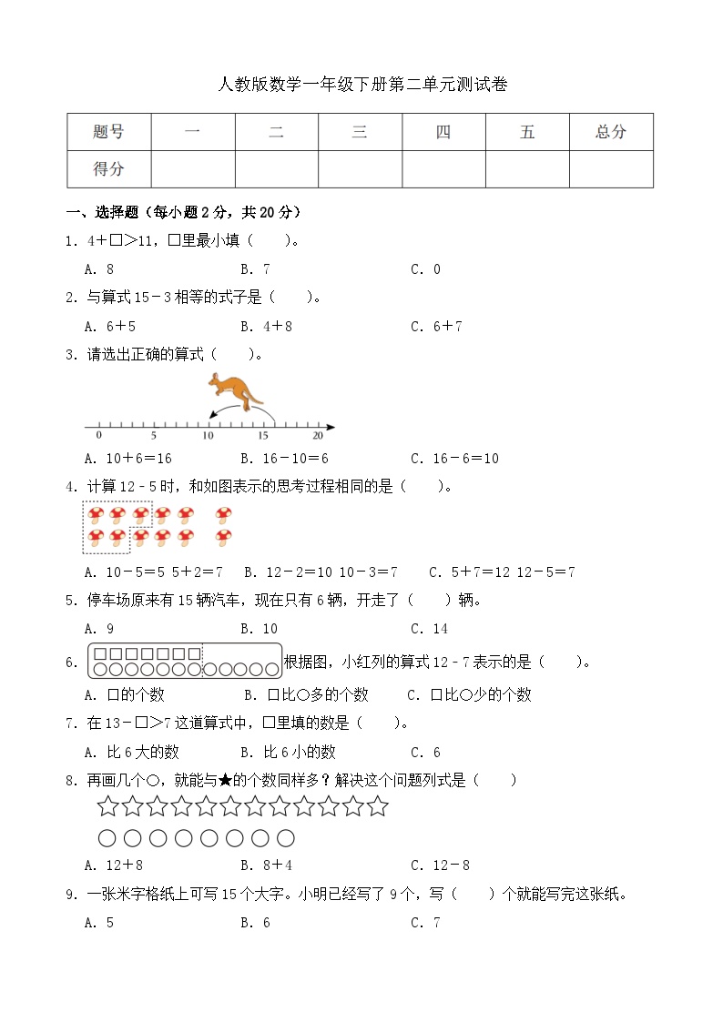 欢迎来到鸡娃题库(www.jiwatiku.cn),今天为您介绍新人教版小学一年级数学下册第二单元测试卷。这份资源完全免费,高清格式支持打印,并附带参考答案。许多家长在搜索一年级数学第二单元练习题带答案时选择了我们,因为质量与便捷性同样重要。