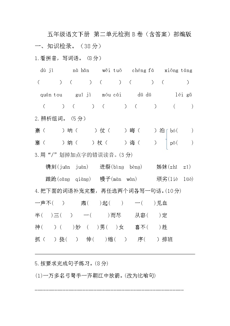 鸡娃题库(www.jiwatiku.cn)为您精心整理了部编版五年级语文下册第二单元检测B卷,试卷配备完整答案,支持高清打印,完全免费下载!📚✨