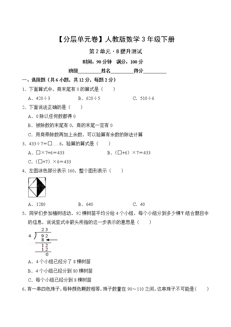 马上获取这份免费可打印的三年级数学第二单元B提升试卷,开启数学能力提升之旅!