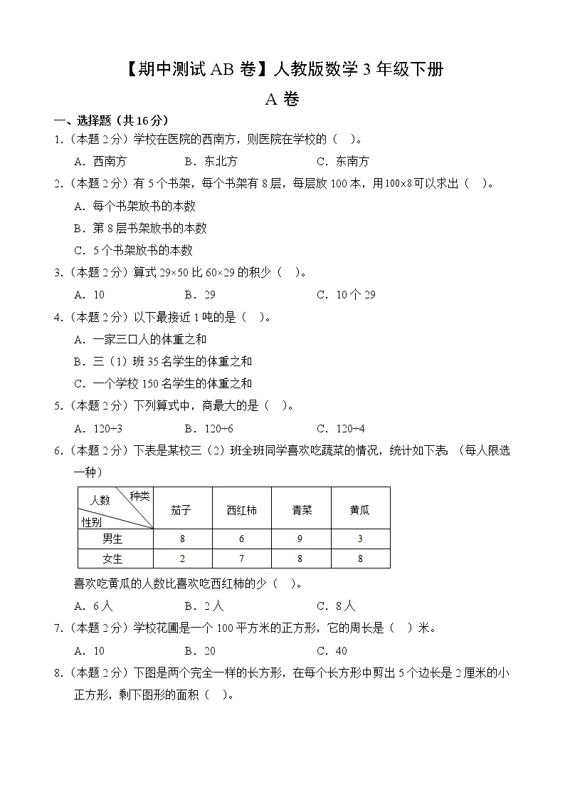 鸡娃题库为您提供人教版三年级数学下册期中测试A基础卷,专门为需要巩固基础的学生设计。这份试卷注重基础知识的考查,题目难度适中。我们提供高清可打印版本,配有详细解析,所有资源均可免费下载,帮助孩子夯实数学基础。