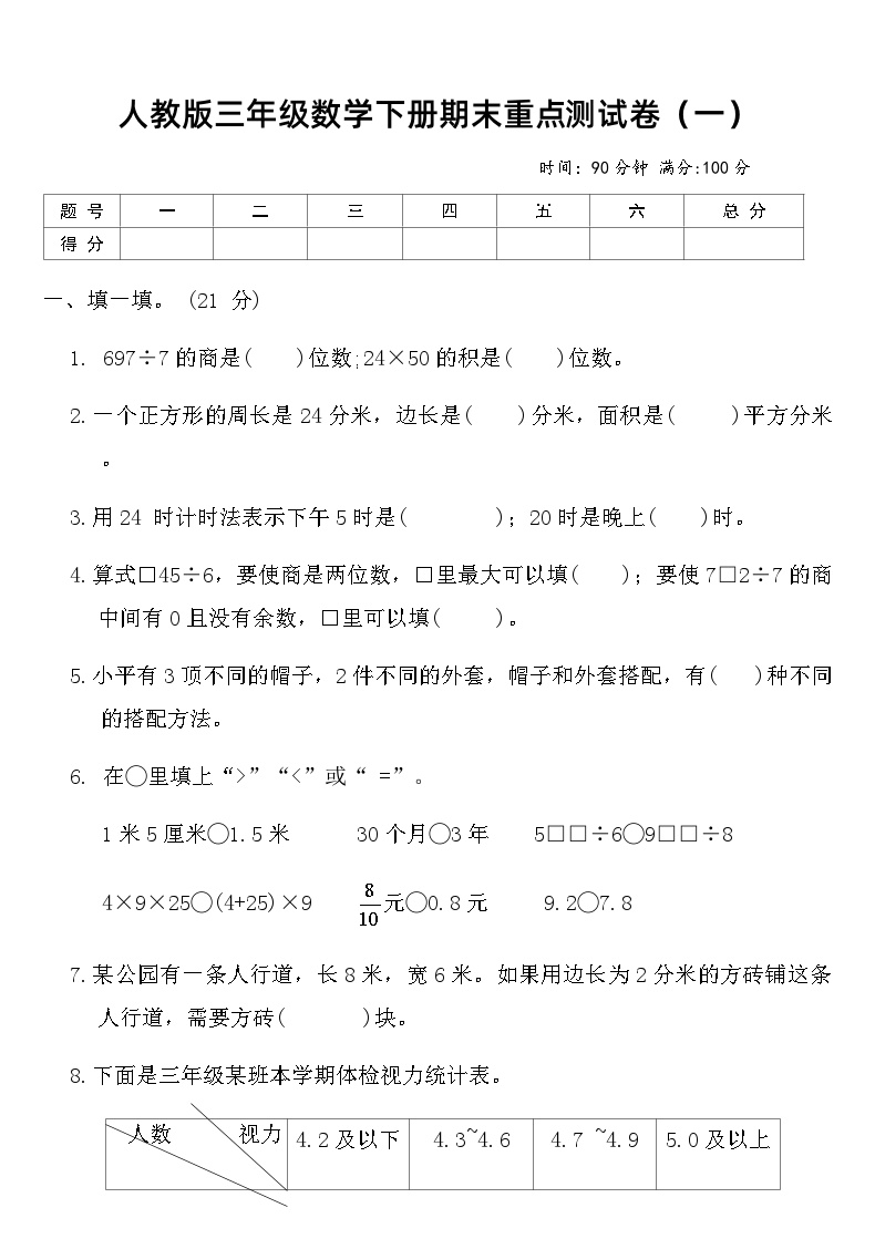 这份三年级数学下册期末重点测试卷由经验教师团队精心编写,题目覆盖本学期所有重要考点。试卷设计注重知识体系的完整性,通过系统练习,孩子能够查漏补缺,巩固重点难点,为期末考试做好充分准备。