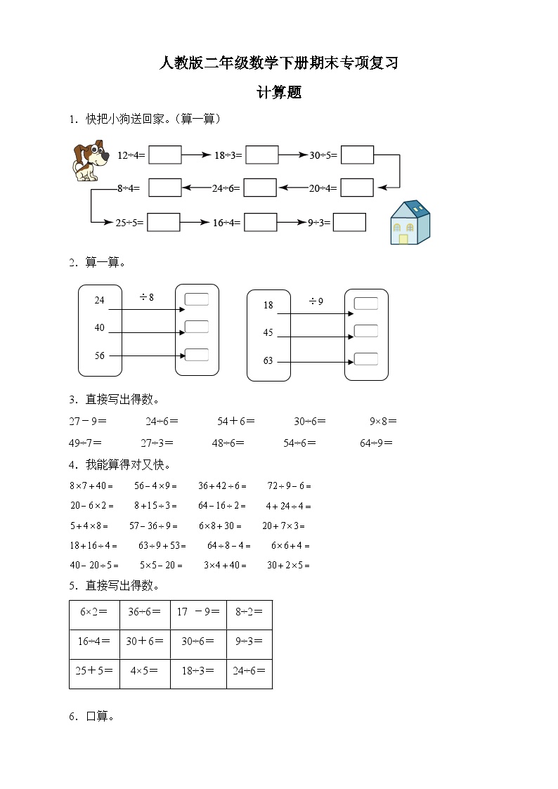期末复习阶段到来,家长们都在寻找优质的人教版二年级数学下册计算题专项训练资源。这份人教版二年级数学下册期末专项复习:计算题(有答案)正是为帮助孩子提升计算能力精心准备。计算是数学学习的基础,专项训练能够有效提高运算速度和准确率。高清可打印的格式让练习更加灵活方便,配有完整答案便于家长检查辅导。