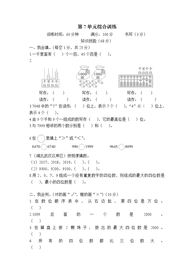 第七单元是二年级数学学习的重要阶段,这份训练卷为您提供专业支持。帮助孩子整合所学知识,提高数学综合应用能力。