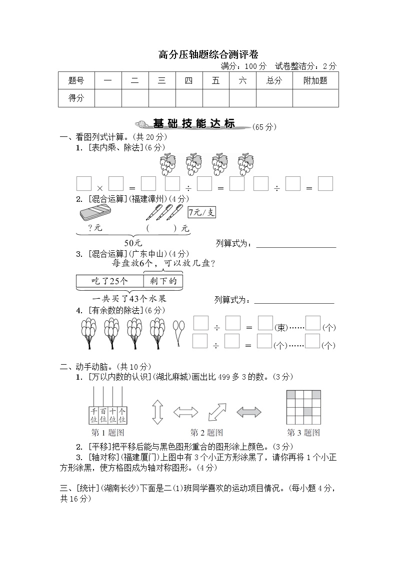 为学有余力的孩子准备,人教版小学二年级数学下册高分压轴题综合检测卷含答案提供挑战性训练。这份检测卷汇集了各种难点题型和拓展题目,适合想要在数学学习上取得突破的孩子。通过挑战高难度题目,培养数学思维和解决问题的能力。
