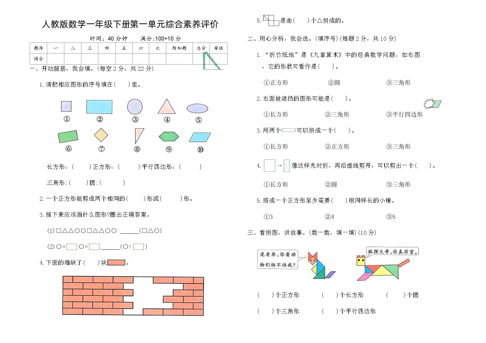 欢迎来到鸡娃题库(www.jiwatiku.cn)🌟,我们专注于提供优质小学教育资源。今天为您推荐的是人教版小学一年级数学下册第一单元综合素养评价卷含答案可打印免费下载,这份资料突破传统测试模式,注重学生数学核心素养的全面发展,帮助孩子在知识掌握的同时提升综合能力。