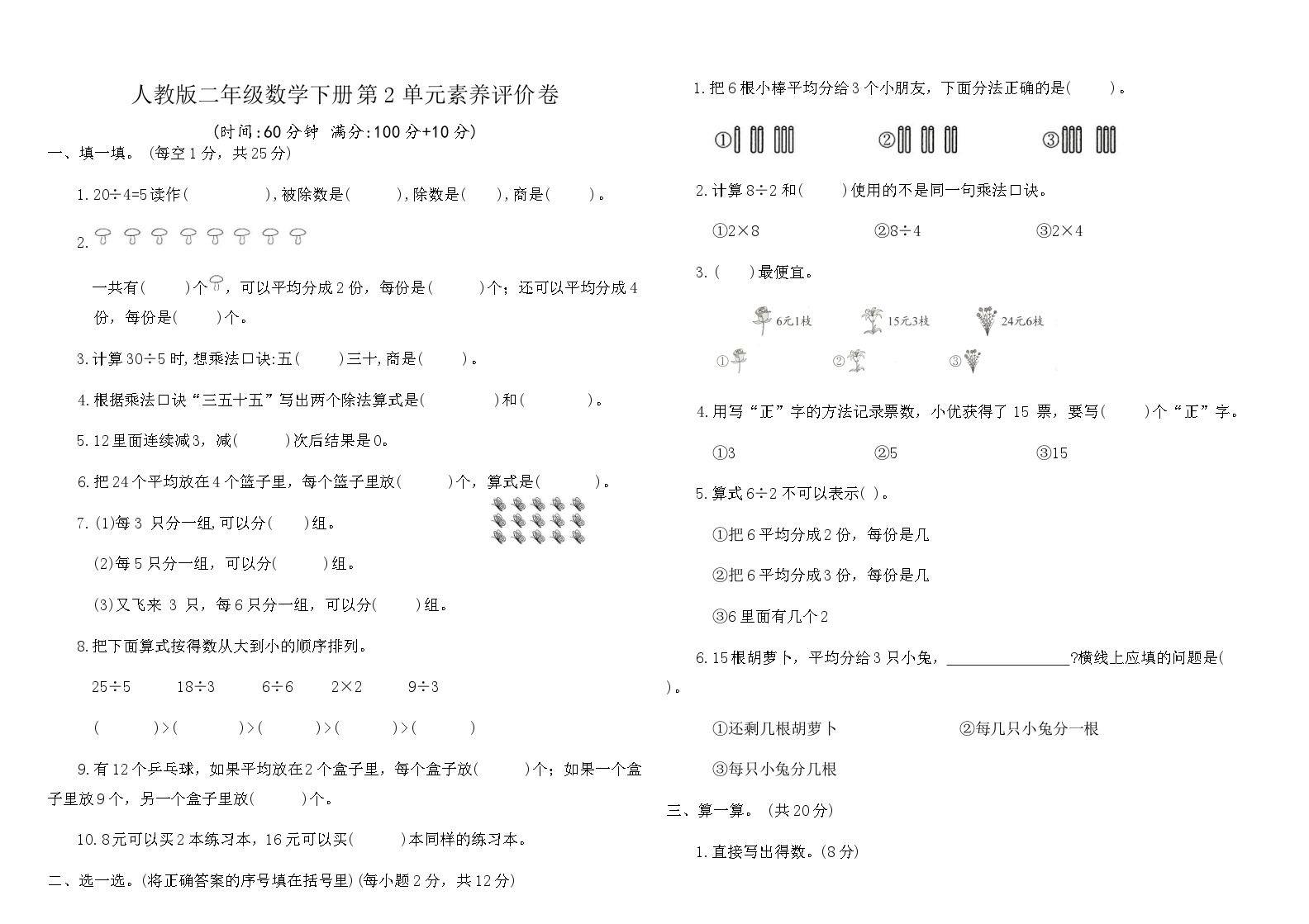 数学学习进入新阶段,人教版小学二年级数学下册第二单元素养评价卷(含答案)可打印免费下载为您提供专业支持。这份评价卷针对第二单元核心素养进行深度评价,帮助孩子检测新知识掌握情况。素养评价是数学学习过程中不可或缺的环节。