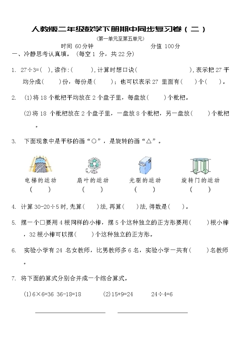 鸡娃题库(www.jiwatiku.cn)继续为您推出人教版小学二年级数学下册期中同步复习卷二(含答案),作为第一套的补充版本,本资源同样免费下载,高清可打印,为孩子提供更全面的期中复习体验。