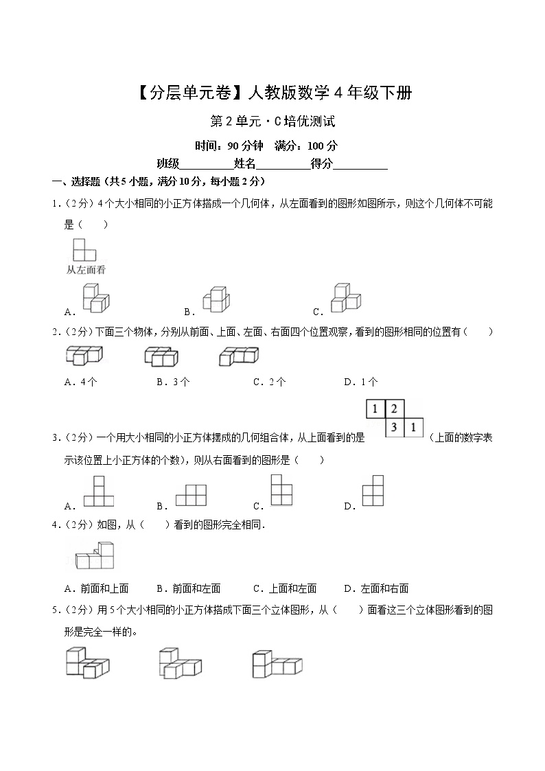 人教版四年级数学下册第二单元【C培优】测试卷全新上线!本试卷针对第二单元重难点设计,帮助学生在掌握基础知识的同时提升数学思维能力。