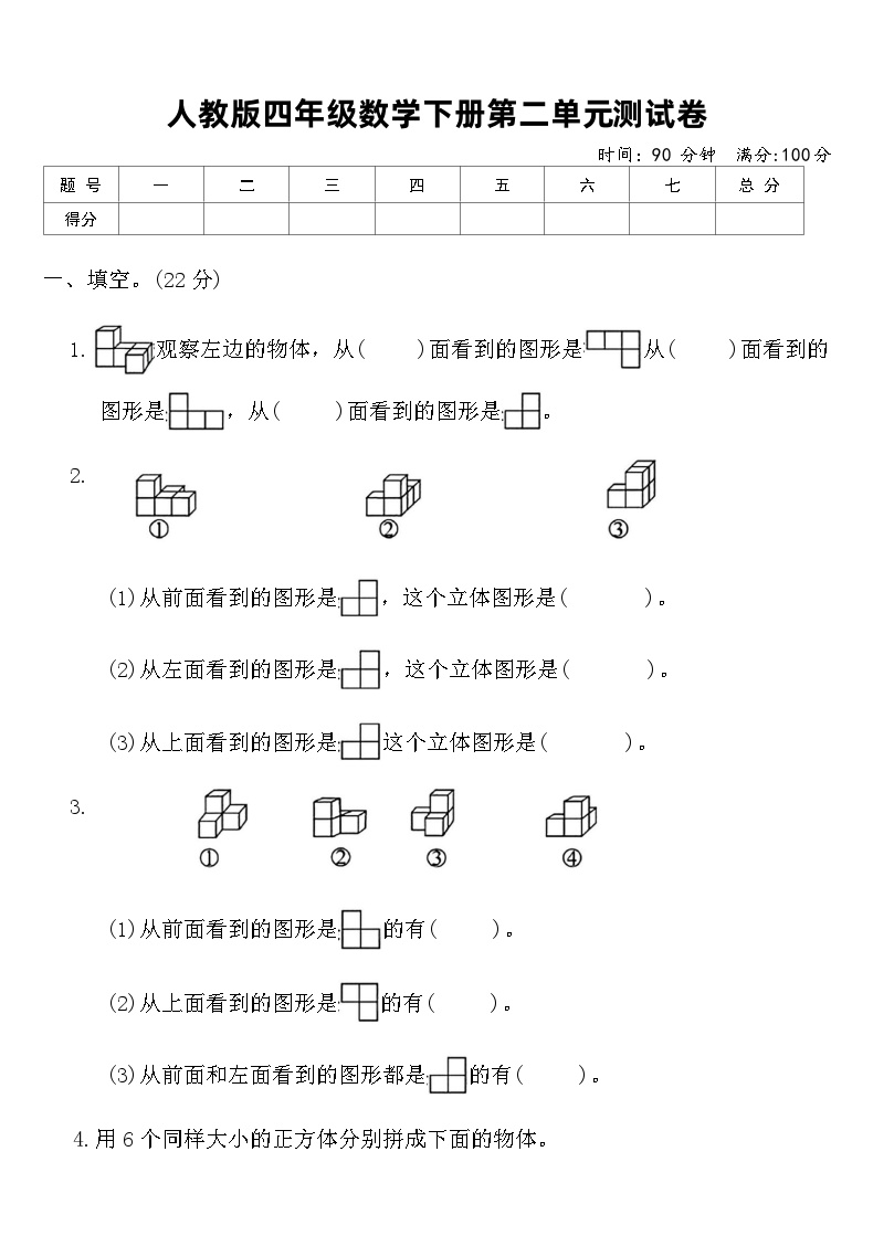 📐 人教版小学四年级数学下册第二单元测试卷(含答案)