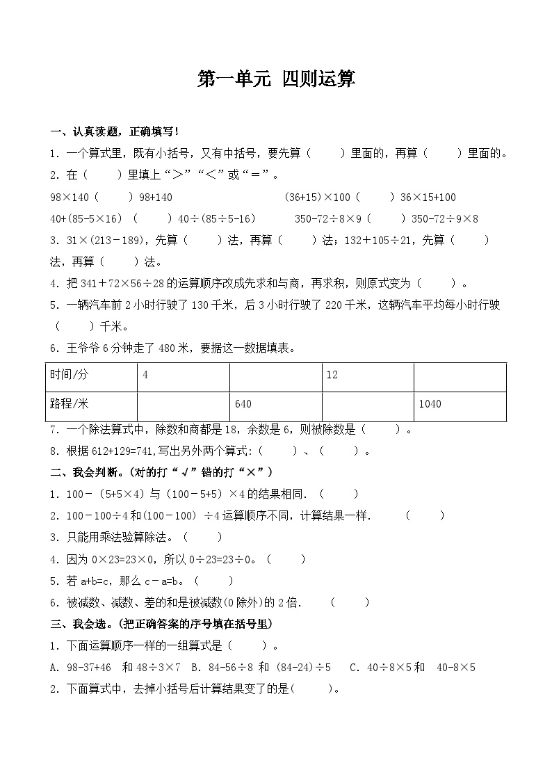 四年级是数学思维发展的关键期,第一单元的基础知识尤为重要。通过系统练习,学生能够建立扎实的数学基础,为后续学习做好充分准备。人教版教材配套练习册与这份基础卷结合使用,效果更加显著。