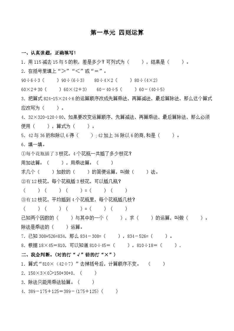 鸡娃题库(www.jiwatiku.cn)专注于为小学阶段的家长和老师提供优质的教学辅助资源,本次特别推出人教版小学四年级数学下册第一单元提升卷,这份试卷不仅包含完整的题目内容,还附带详细答案,支持高清可打印,且完全免费下载,能够精准满足四年级学生在第一单元学习后的巩固练习需求,也为家长辅导和老师教学提供便利。