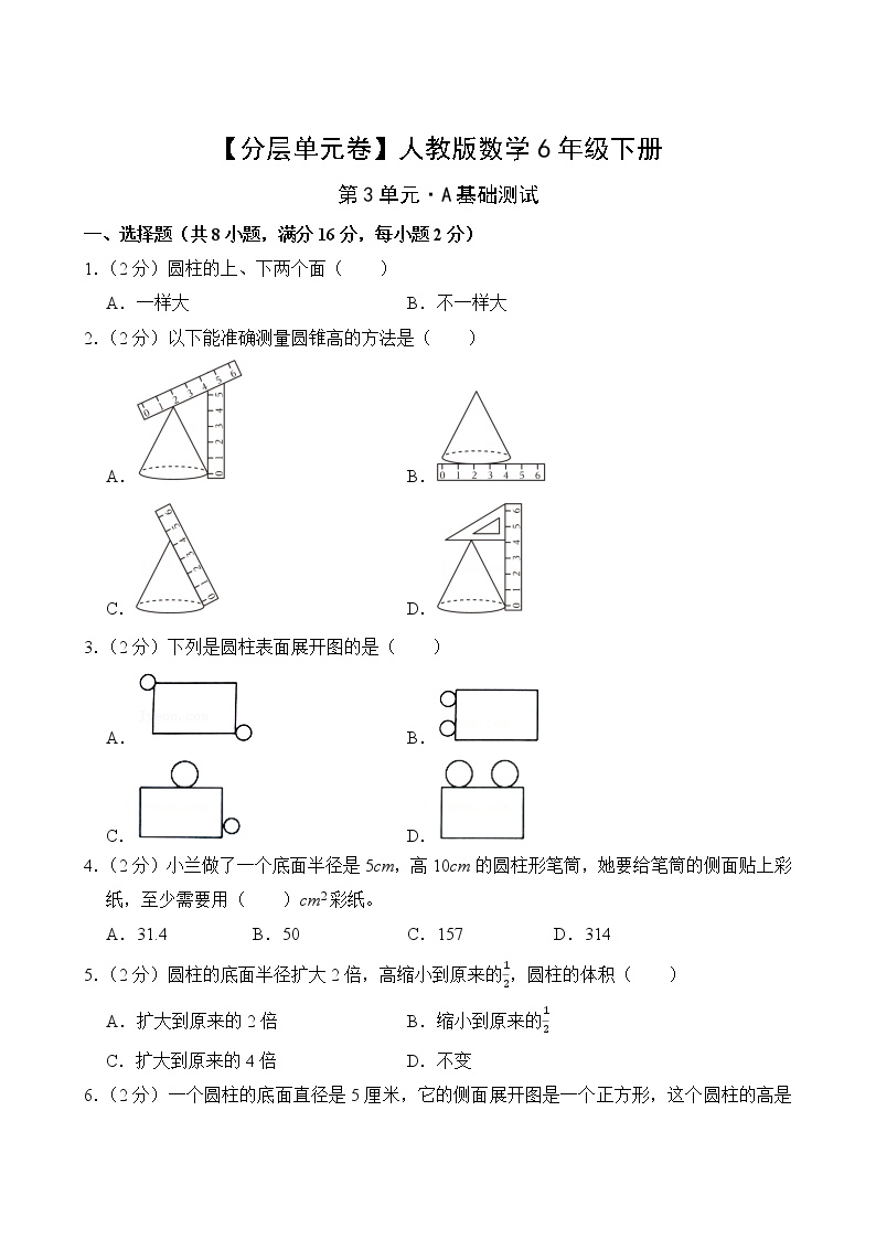 鸡娃题库(www.jiwatiku.cn)致力于成为您家庭学习的好帮手。现在为您推荐人教版六年级数学下册第三单元【A基础】测试卷。本单元比例的知识是后续学习的重要基础,这份试卷能有效检验孩子的掌握程度。