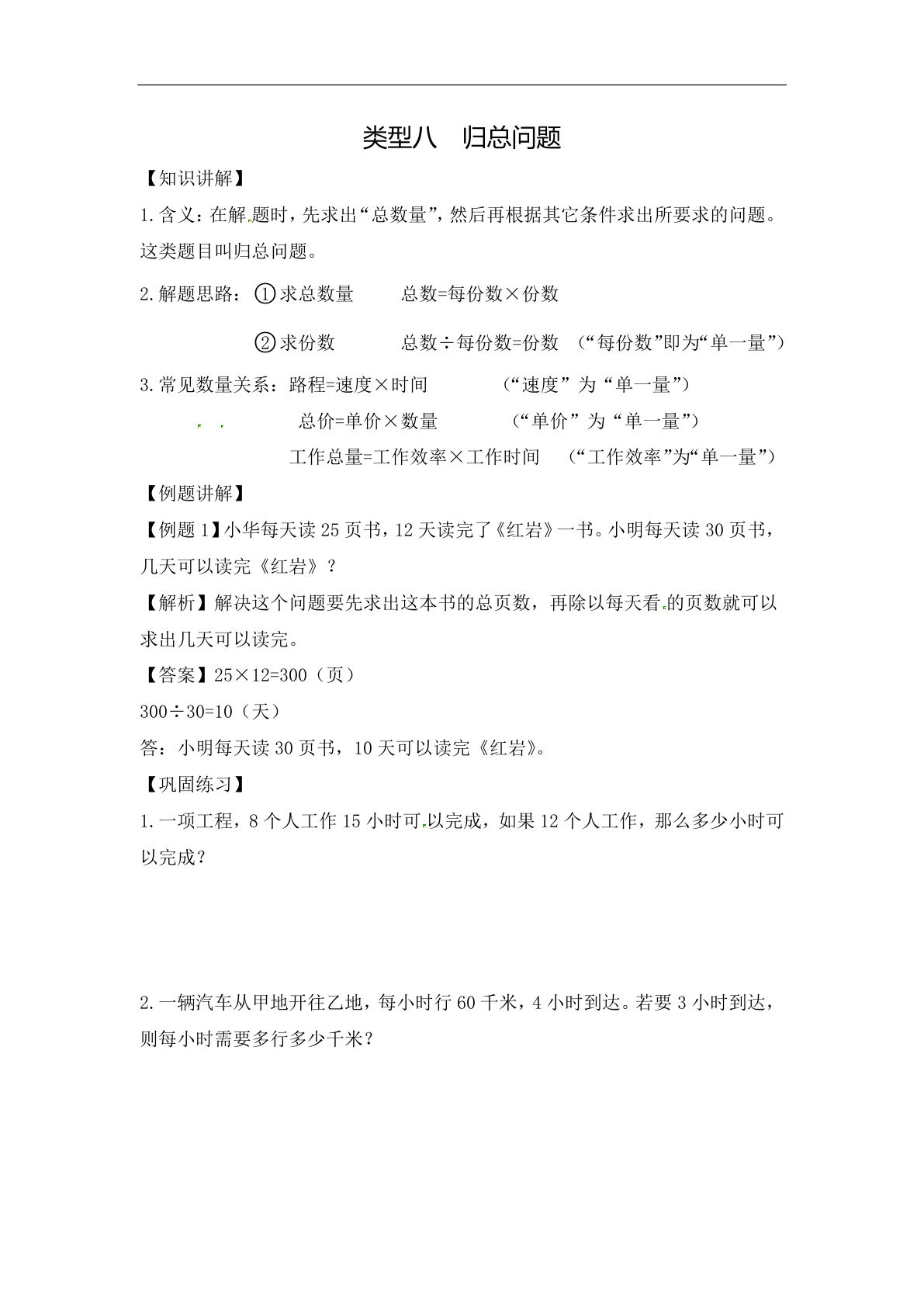 | 工程问题 | 1,4,7,17-20 | 总量=人数×时间 |