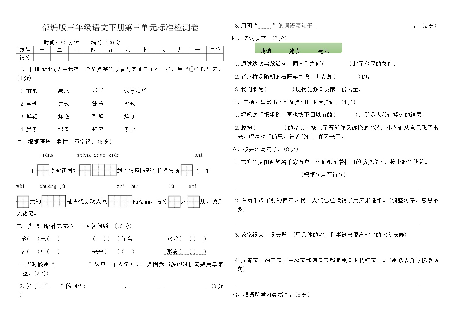 亲爱的家长朋友们,部编版小学三年级语文下册第三单元标准检测卷正式上线!这份高清可打印的检测卷配备详细答案,是检测学习效果的优质选择。