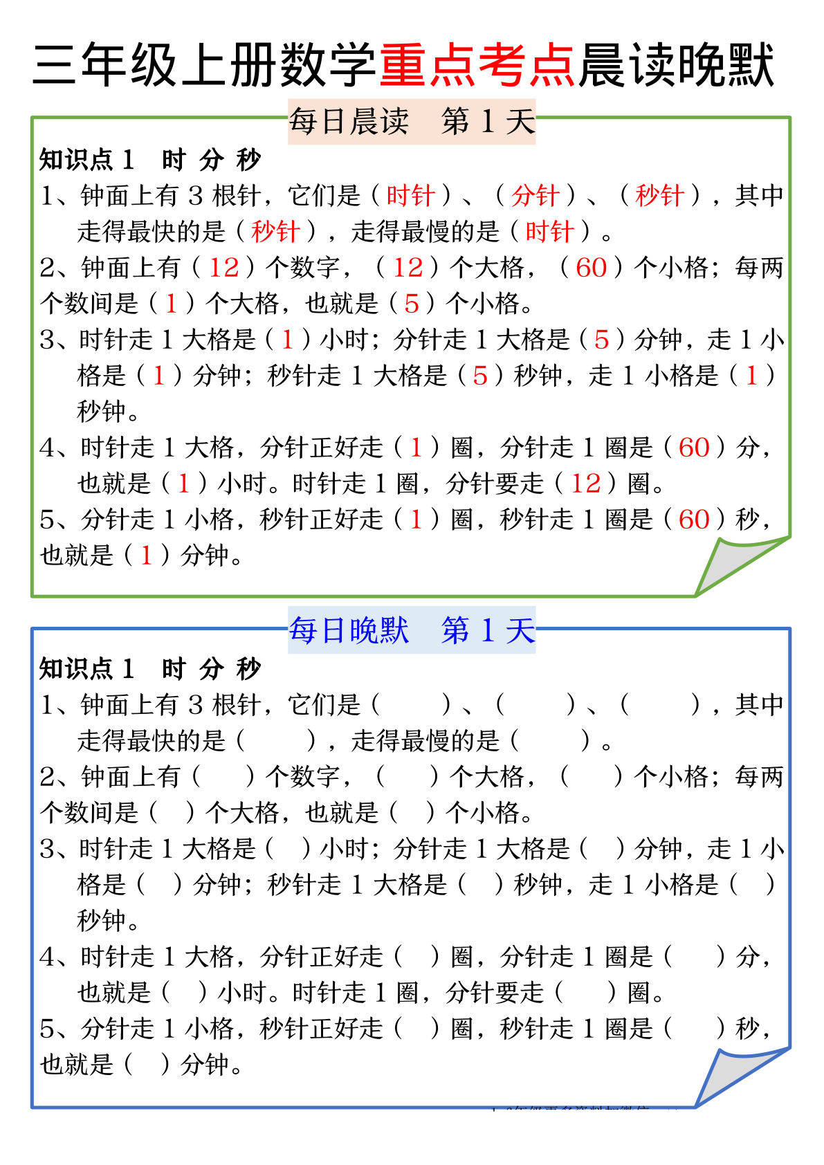 鸡娃题库最新推出的三年级上册数学预习晨读晚默手册,采用"晨读记忆+晚默巩固"双轨模式,系统梳理时分秒、万以内加减法、测量等7大核心知识点。每日配套训练包含25个关键概念和12类易错题型,帮助孩子建立完整知识体系。