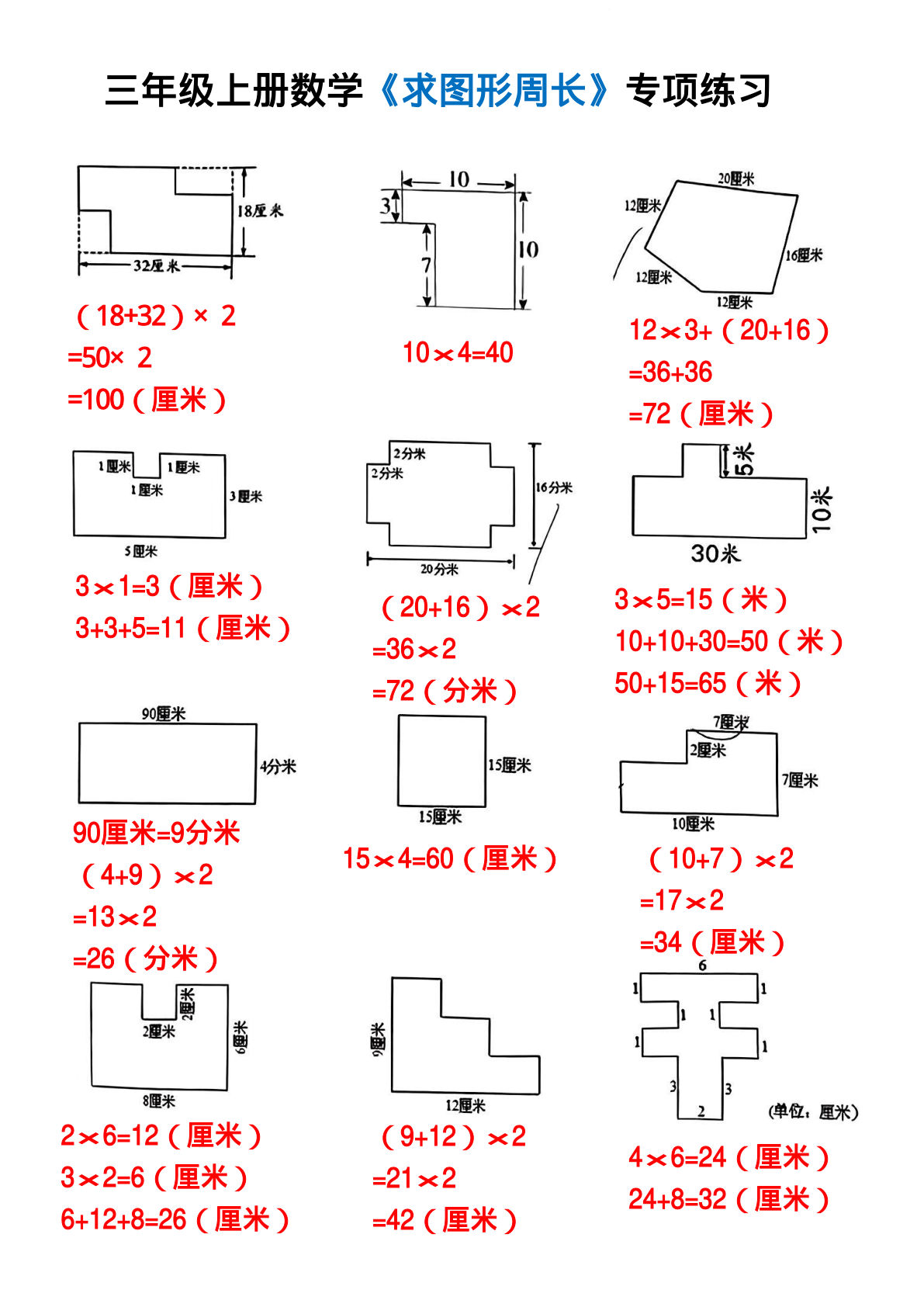 鸡娃题库最新推出的《求图形周长》专项训练,包含12类经典题型,从基础公式应用到复杂组合图形计算,采用"三步进阶法":单图形→组合图形→实际应用。