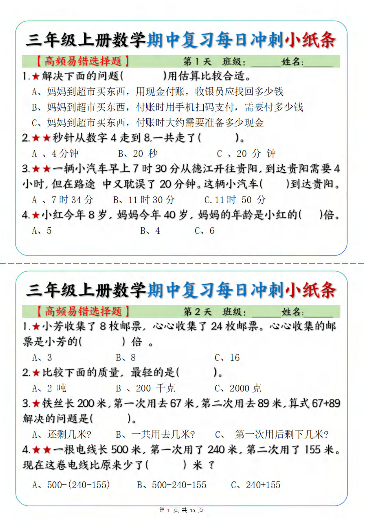 鸡娃题库最新推出的《期中复习每日冲刺小纸条》,包含20天分层训练,系统覆盖选择题、判断题、填空题、计算题四大题型。独创"三阶复习法":基础巩固→易错突破→能力提升,每日15分钟高效复习。
