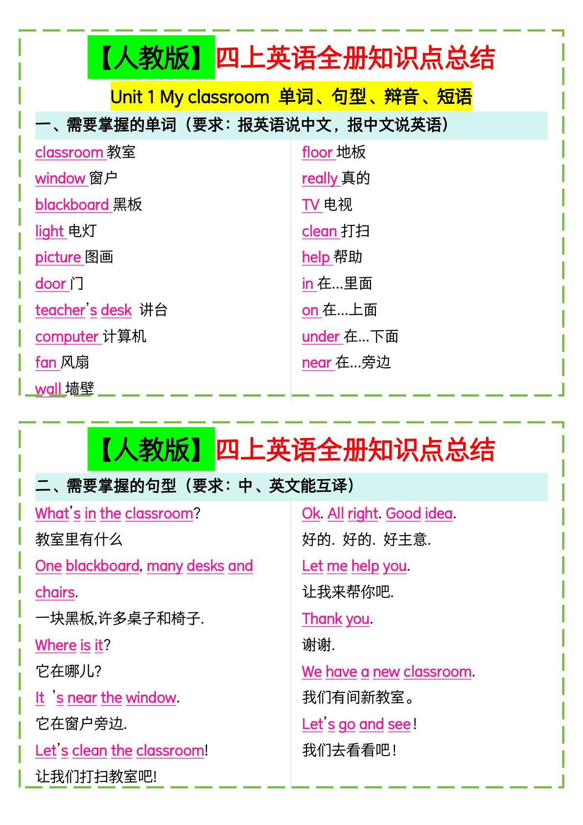 这套四年级英语知识点大全采用主题分类+多维训练设计,既适合课前预习,也可作为期末复习。通过词汇积累+句型应用+语音辨析三维体系,全面提升学生英语综合能力。