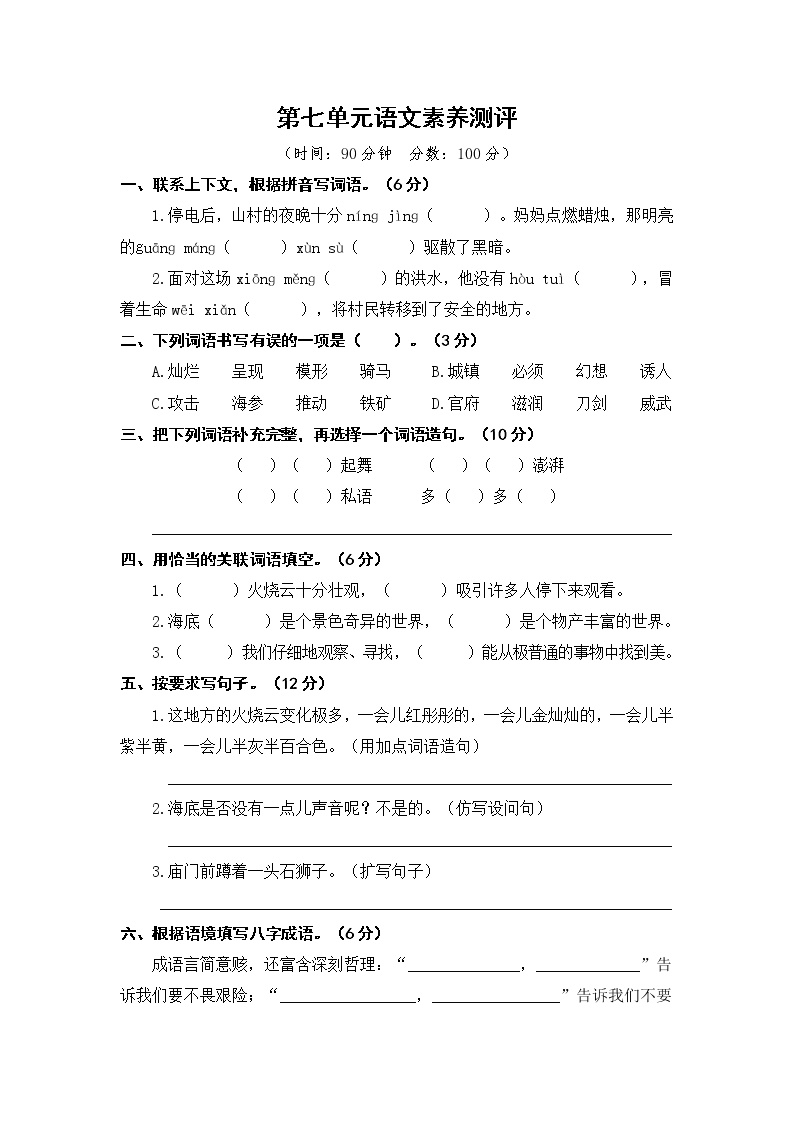 这份第七单元语文素养测评试卷是鸡娃题库精心准备的优质教学资源,题目设计富有特色,内容涵盖全面,能够有效检测学生的学习效果,提升语文综合能力。