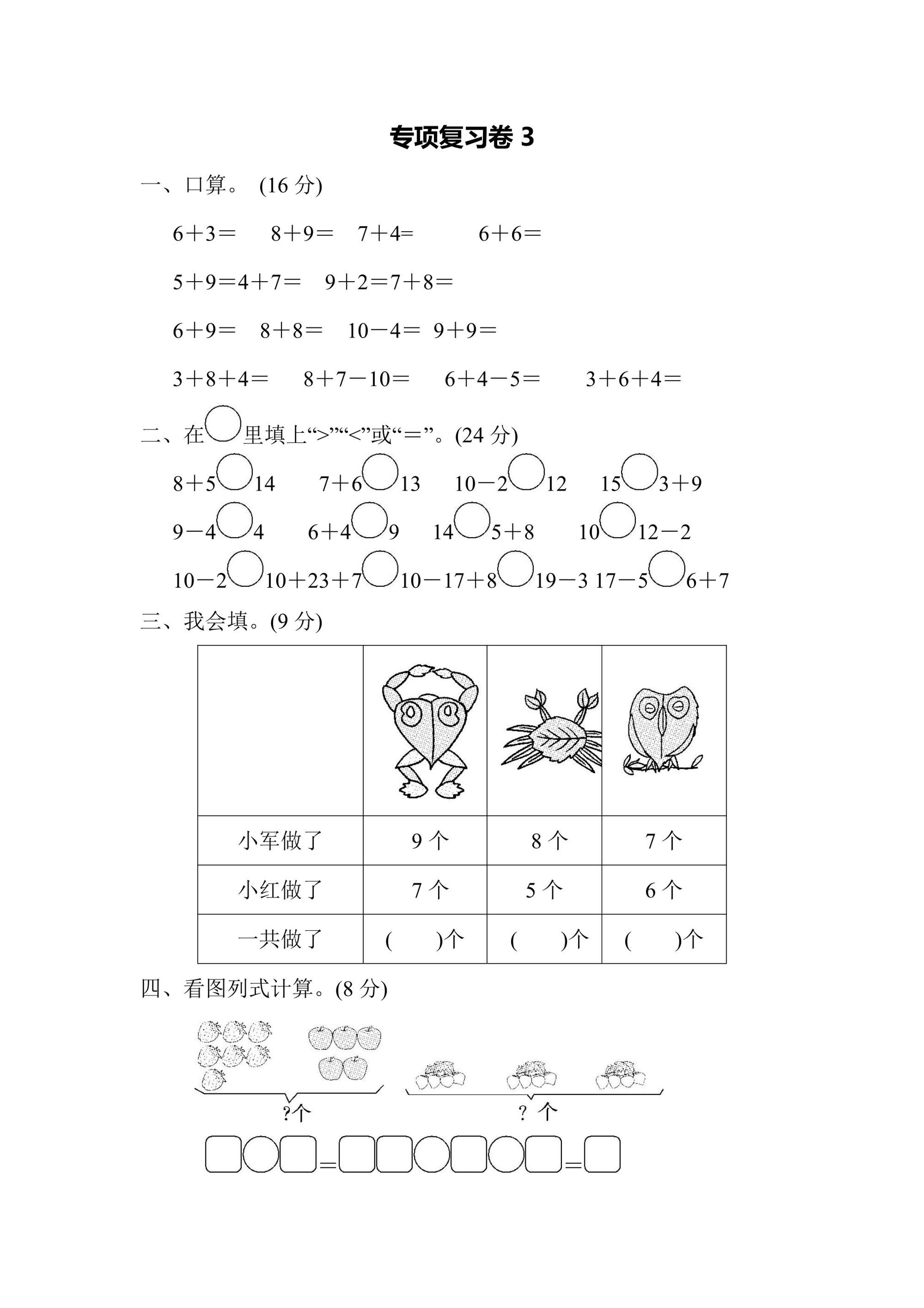 苏教版小学一年级数学上册专项复习卷3聚焦图形与空间的认知训练,培养孩子的几何直观能力。这份高清可打印的数学复习卷包含丰富的图形识别与空间感知题目,配有完整答案解析。鸡娃题库提供的免费下载资源帮助孩子建立初步的几何概念。🔺🔵 复习卷3通过生动有趣的图形练习,激发孩子对几何知识的兴趣,培养观察力和空间想象力,为后续数学学习创造良好条件。