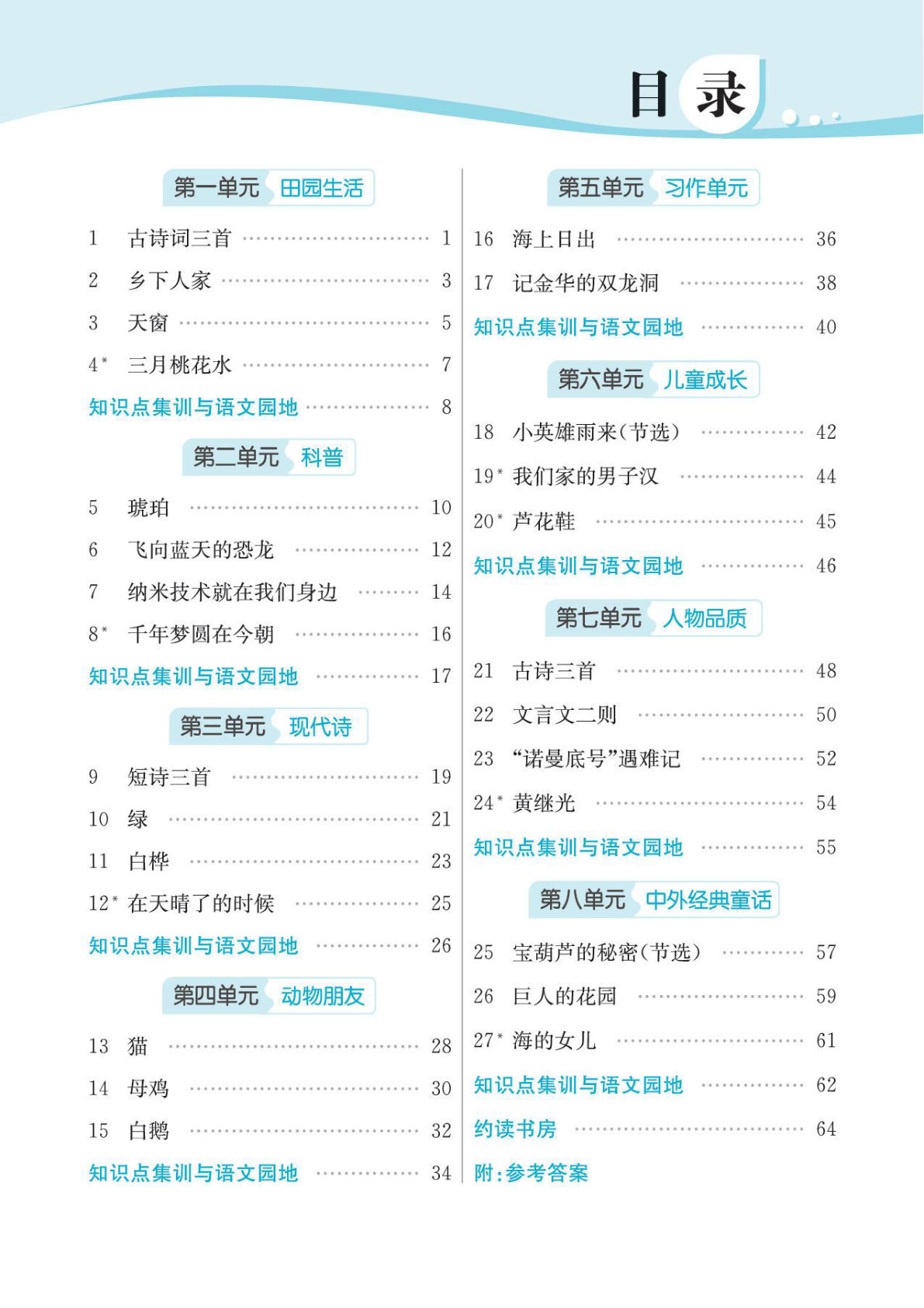 每单元后附有“知识点集训与语文园地”,系统梳理单元重点,帮助学生构建知识体系。