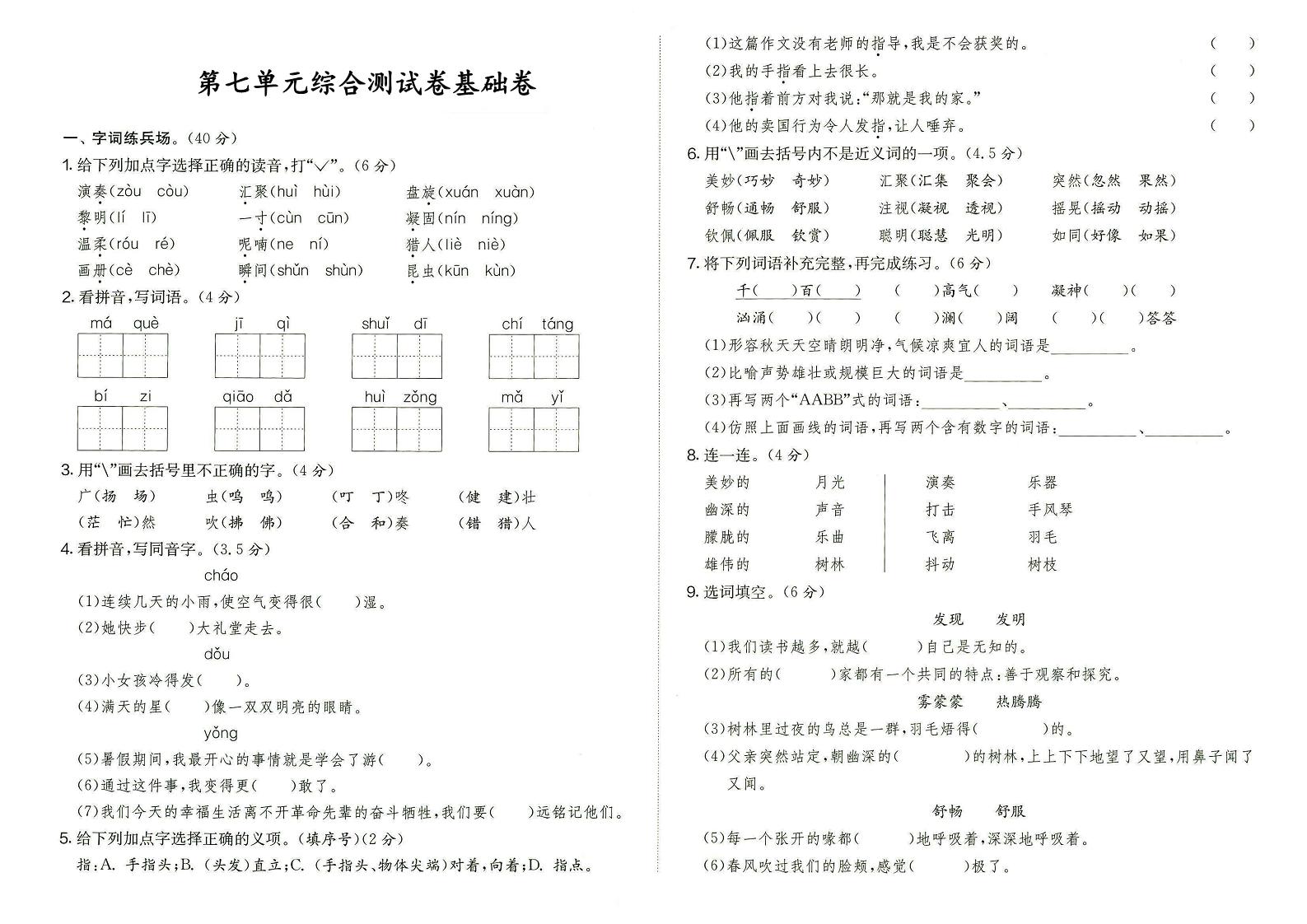 随着学期进入后半段,第七单元内容更具挑战性。这份精心设计的测试卷,能帮助孩子查漏补缺,巩固学习成果。