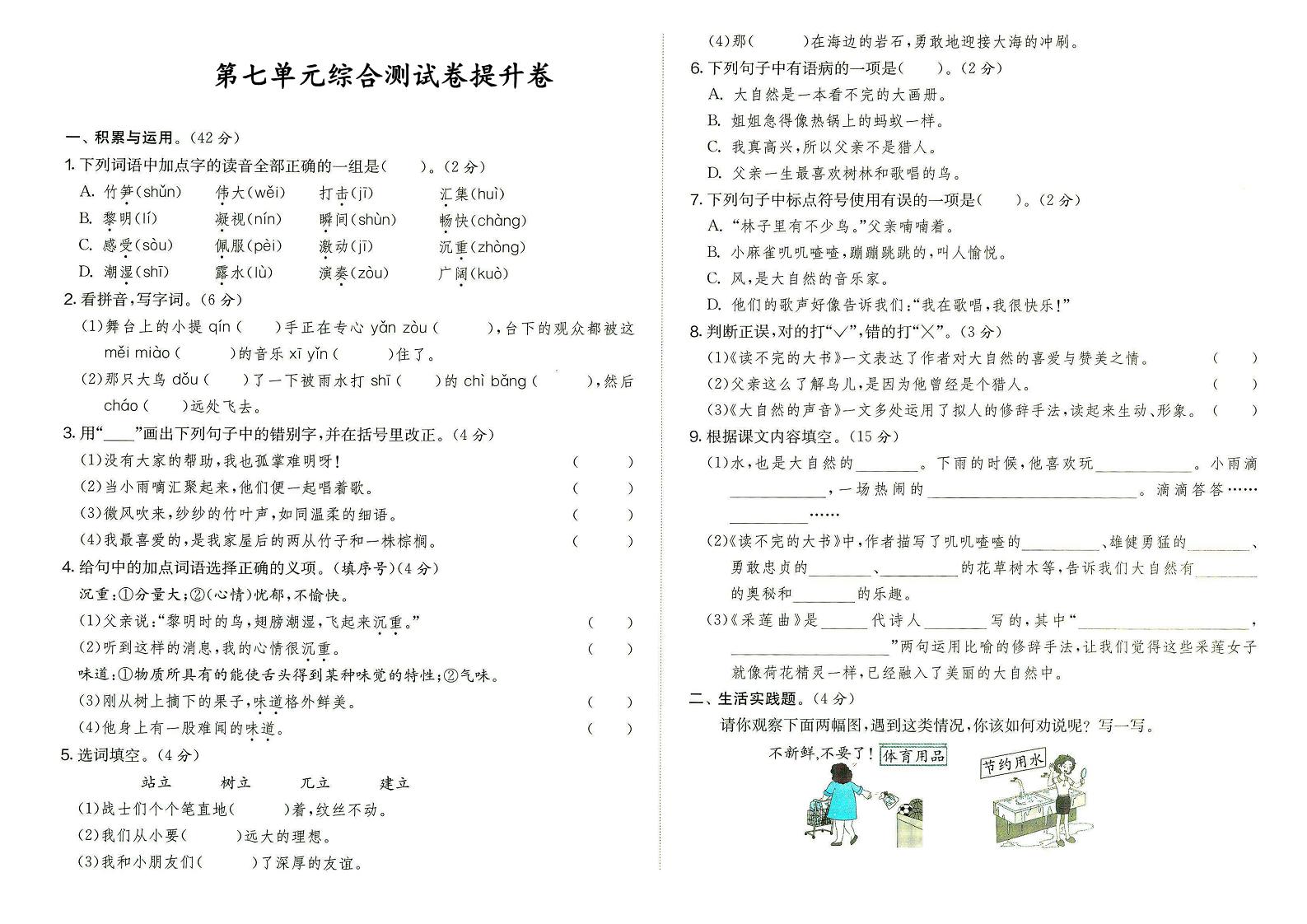 📖 部编版三年级上册语文第七单元综合测试卷【提升卷】