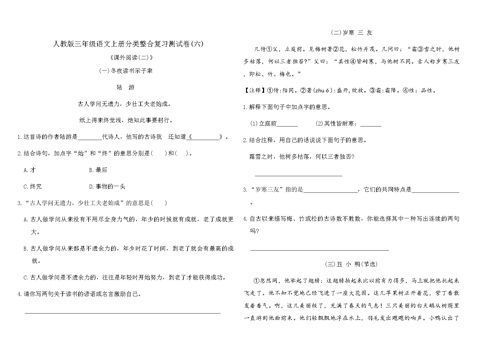 鸡娃题库为您推出人教版小学三年级语文上册分类整合复习测试卷(六)(含答案)!本卷专注于学习方法和策略训练🧠。
