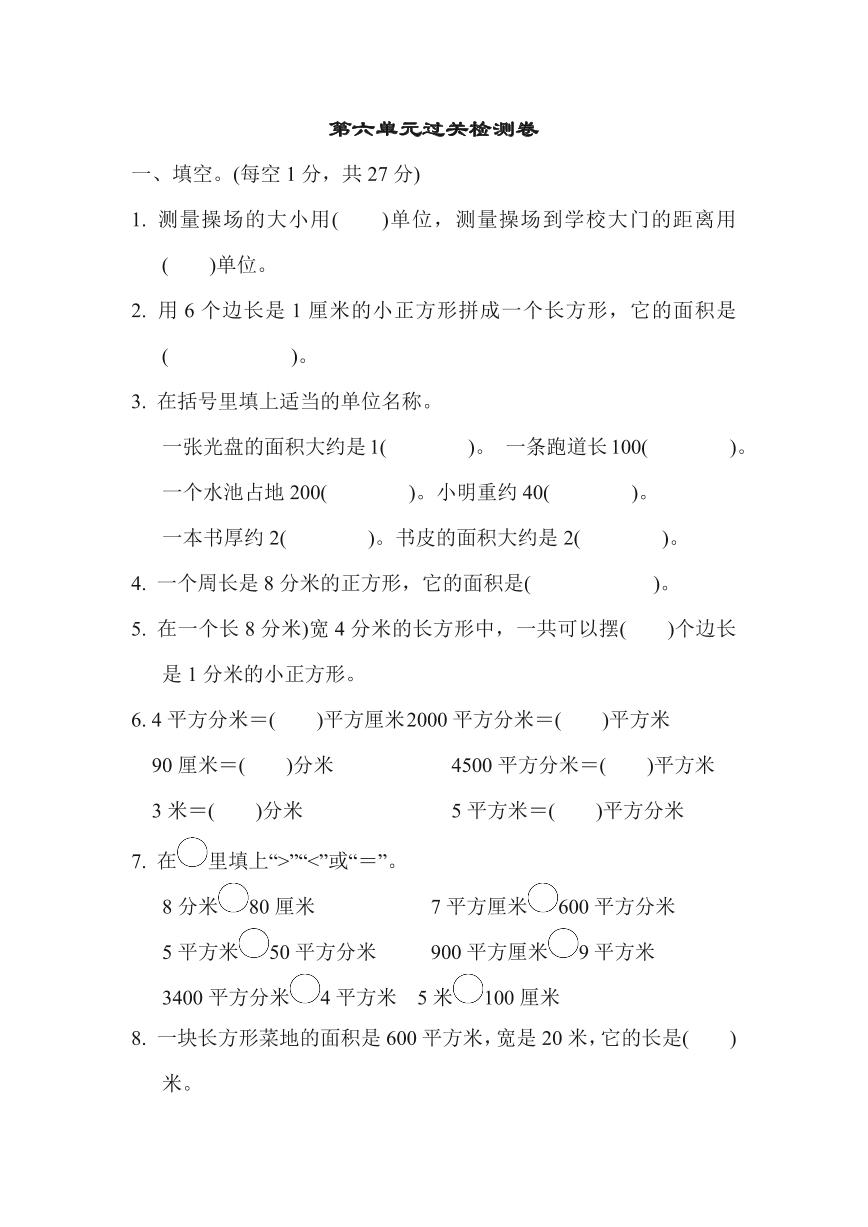 鸡娃题库精心整理苏教版三年级数学下册第六单元过关检测卷,免费分享,高清可打印,帮助孩子轻松应对数学学习!