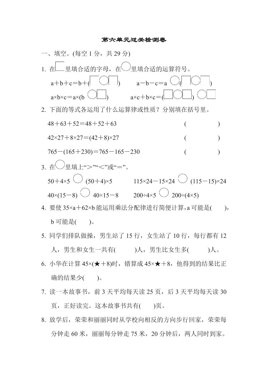 苏教版四年级下册数学第六单元过关检测卷是专业设计的单元测评工具。这份资源完全免费,高清可打印,帮助学生有效检测学习效果。