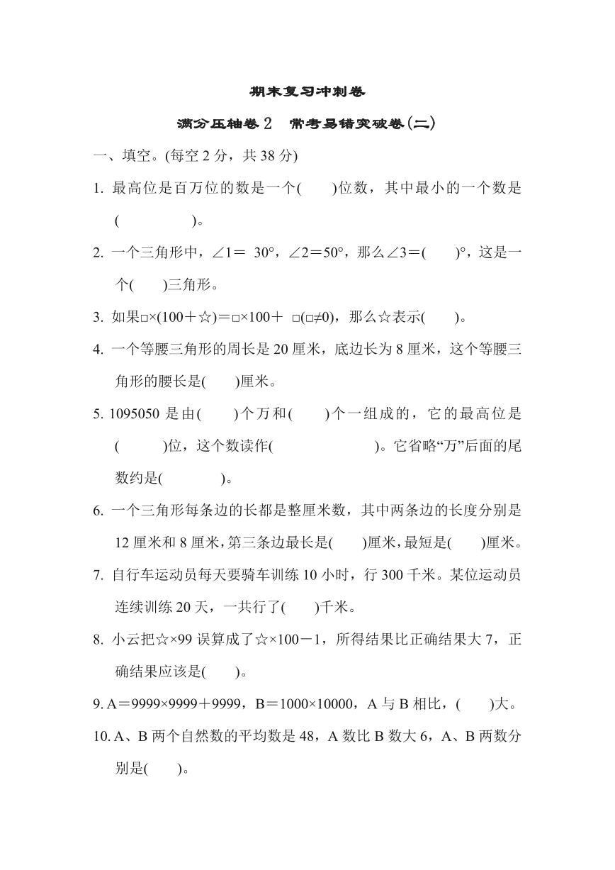 期末考试是检验学生学习成果的重要时刻,苏教版四年级下册数学常考易错突破卷2作为系列复习资料的延续,为孩子们提供了更加全面的备考支持。