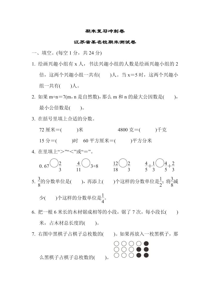 🏆 江苏省名校五年级数学期末测试卷|苏教版|含详细解析