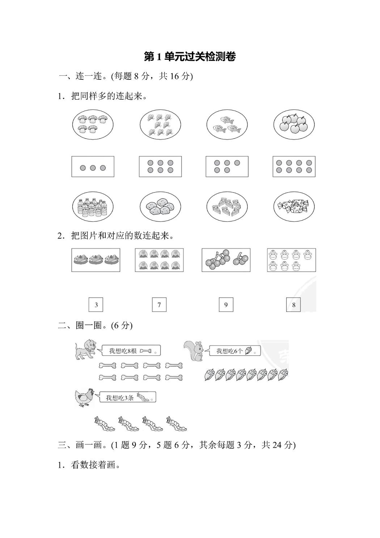 🧮 北师版一年级数学第1单元过关检测卷发布