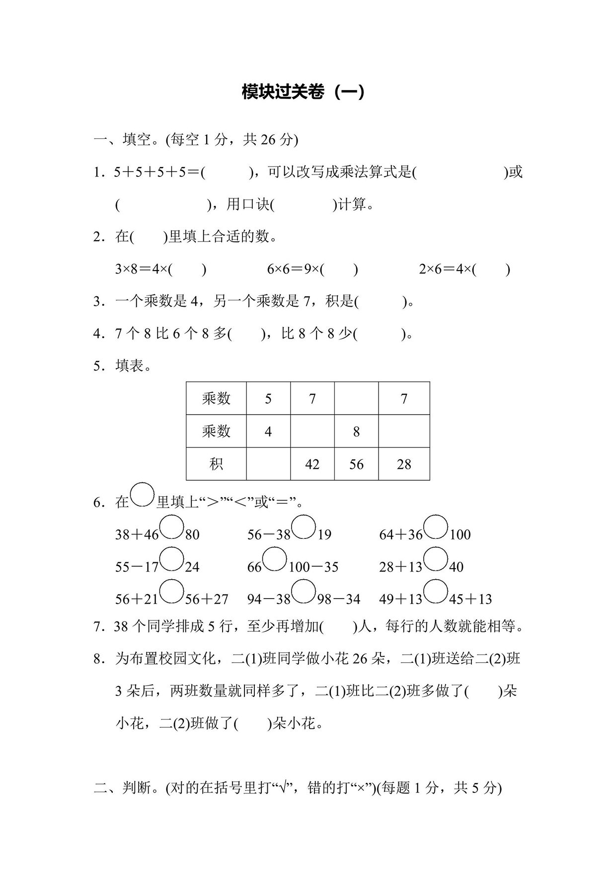 模块过关卷1针对二年级上册数学重点模块设计,通过专项训练帮助孩子系统掌握知识点,提升解题能力。