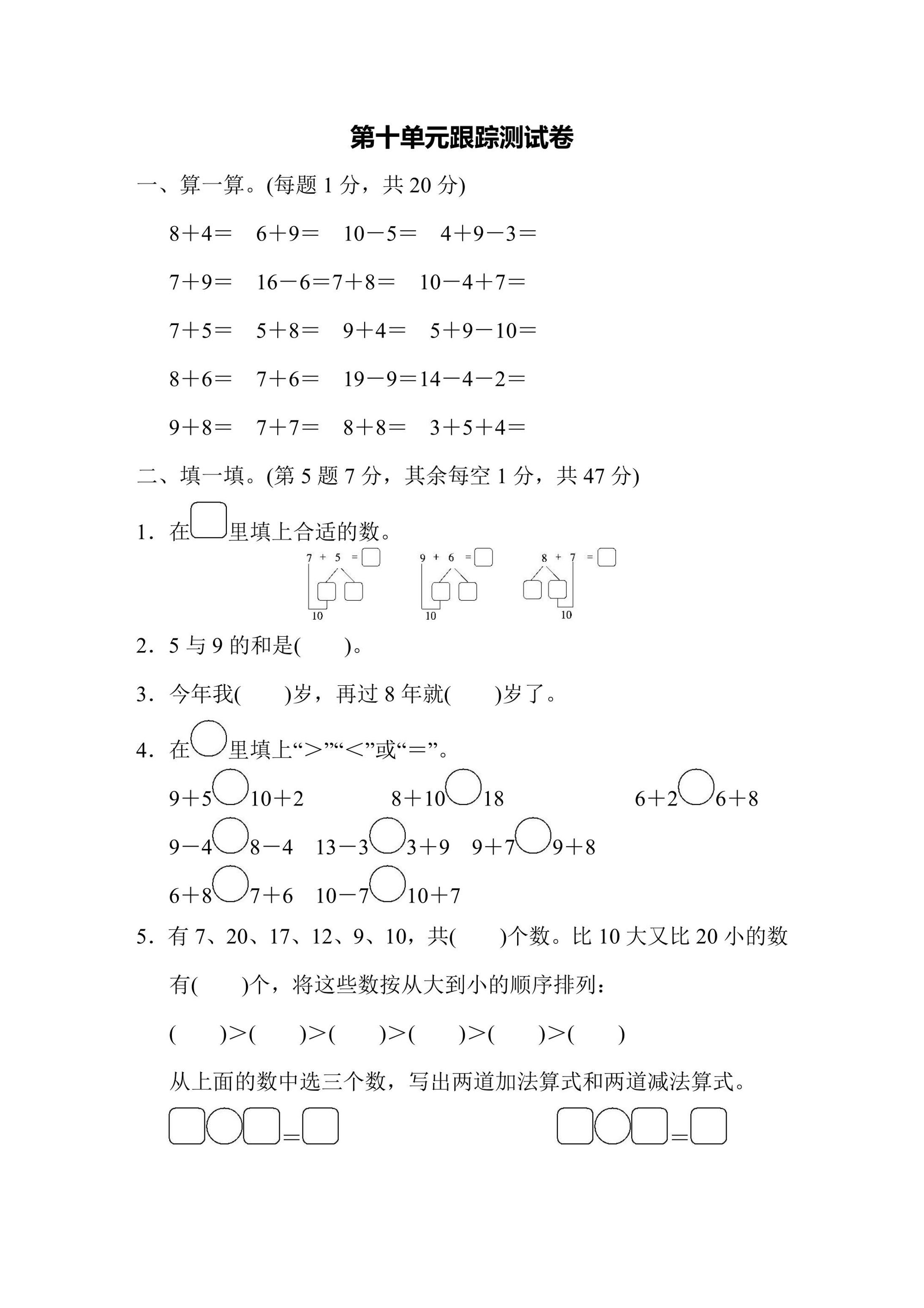 鸡娃题库为您奉上苏教版一年级数学上册第10单元跟踪检测卷,这是期末复习的绝佳资源,帮助孩子全面检验学习成果。🏅